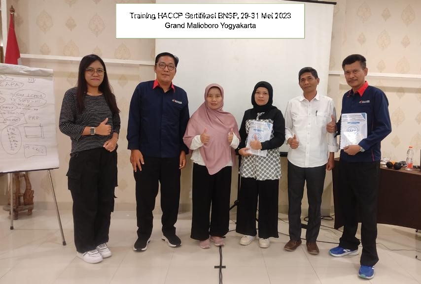 Training Penyusun Dokumen Sistem Hazard Analysis Critical Control Point (HACCP) Sertifikasi BNSP dimana skema sertifikasi tersebut difokuskan untuk personel yang melaksanakan penyusunan dokumen sistem HACCP. Bertujuan memberikan pemahaman kepada peserta tentang langkah persiapan, implementasi dan dokumentasi HACCP. Materi pelatihan didesain berdasarkan SKKNI No 618 Tahun 2016 tentang Penetapan SKKNI Kategori Industri Pengolahan Golongan Pokok Industri Makanan Bidang Keamanan Pangan